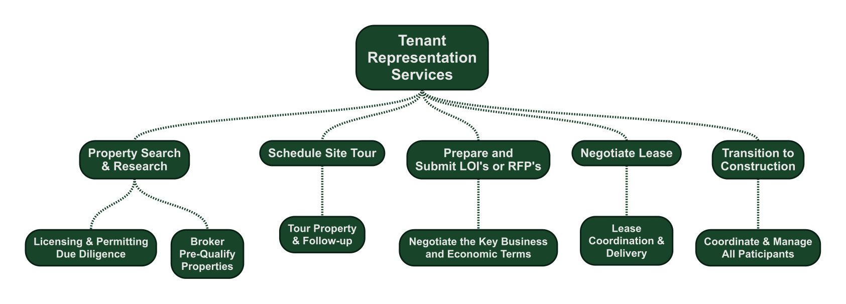 - LEVERAGED NEGOTIATION: With multiple options on the table, we will provide cost comparisons and incentivized negotiations to get you the best commercial lease possible. Maybe you are better off moving? Now you will have all the facts to negotiate with.